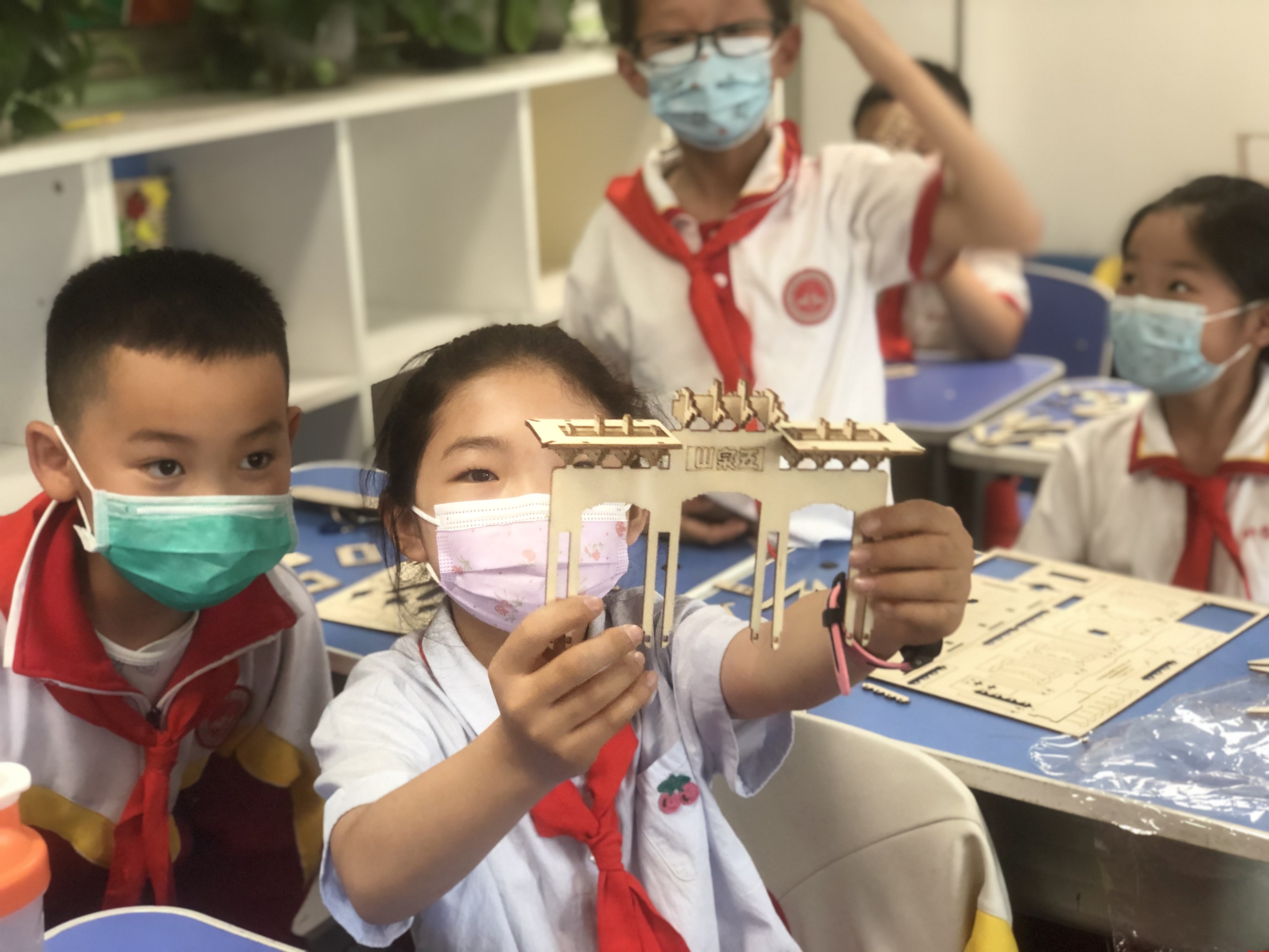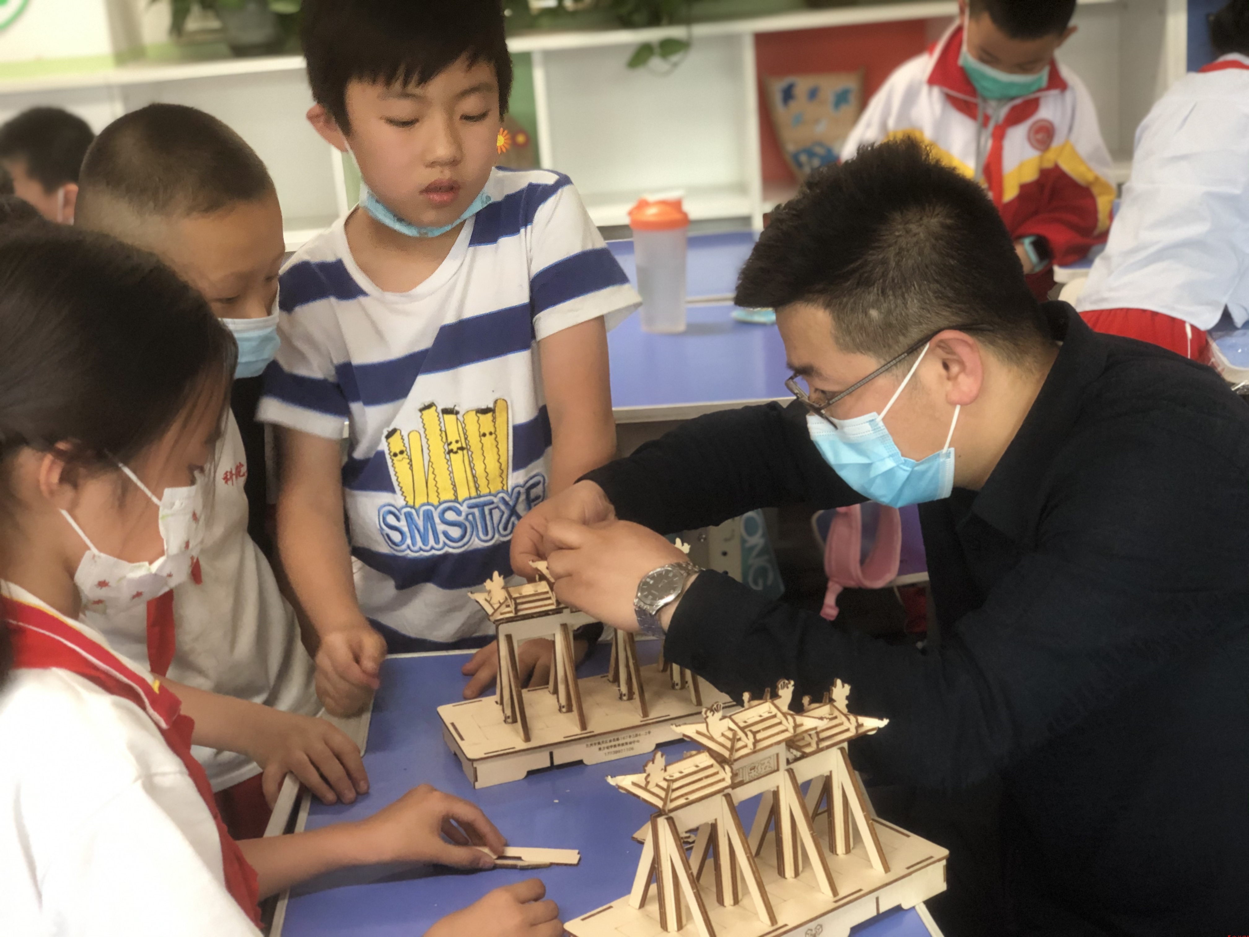 為了讓學(xué)生們更直觀了解斗拱,我們專門帶來了斗拱模型以及蘭州特有的古建筑結(jié)構(gòu)“五泉山”大門的模型,讓同學(xué)們近距離的觸摸,自己動手感受用榫卯拼插而成的斗拱,從而讓大家進一步了解斗拱卯榫的神奇結(jié)構(gòu)以及古代勞動人民的勤勞與智慧。